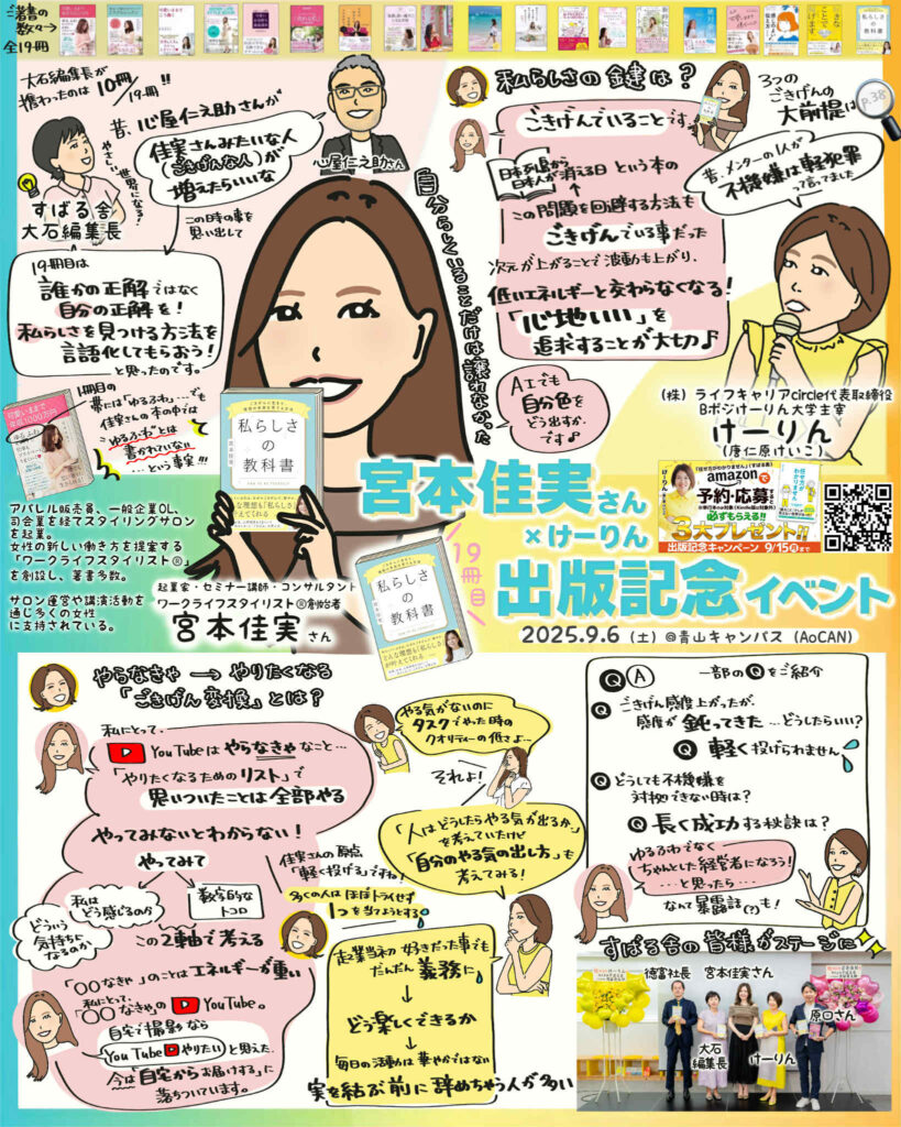 LIVEをリアルタイムで見れない方にも、けーりんが対談したお相手にもグラレコが喜ばれた事がきっかけでライキャリ専属のグラレコライターになりました。